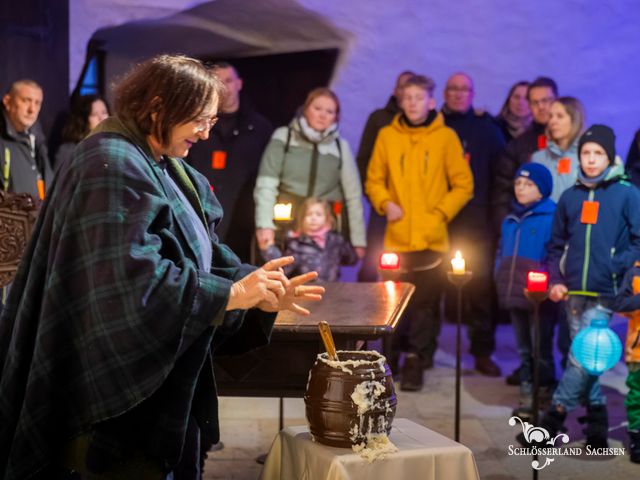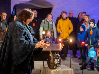 Der Erlebnis-Rundgang (Dauer 60 Minuten) führt Klein und Groß durch die kerzenerhellte Burganlage. Geschichten zum Staunen, Lernen und Mitmachen werden von renommierten Akteuren wie u.a. dem Wandertheater Schwalbe und Monika Paul von Museum Mobil gestaltet. Vor oder nach der Führung ist für Gegrilltes, Glühwein und Punsch am wärmenden Feuer gesorgt. Wer möchte, kann eine Laterne mitbringen oder vor Ort vor dem Rundgang eine basteln und einen persönlichen Wunsch an unserem Wunschbaum hinterlassen.